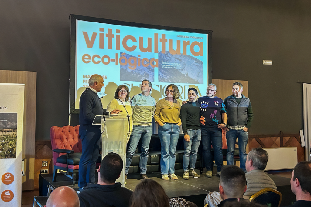 el valor que aporta a la marca y a los vinos el posicionamiento ecológico, una tercera ponencia por parte de un viticultor de Txakolí en ecológico (Aitor Irazu) que transmitió a los asistentes las dificultades climáticas a las que se enfrenta y cómo lo hace en eko,  y se cerró la jornada con un coloquio entre los ponentes acompañados por un viticultor de la comarca que pudo explicar también la particularidad de la misma (Enrique Cupani), moderados por un miembro de Subsierra (Roberto Oliván).
